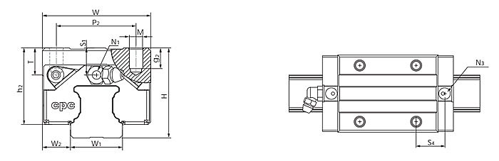 3、CPC直线导轨滑块ERC25MN所有方向皆具有高刚性:运用四列性圆弧凹槽,配合四列钢珠等45度之接触角度,让钢珠达到理想的两点接触构造,能承受来自上下和左右方向的负荷;在必要时更可施加预压以提高刚性。